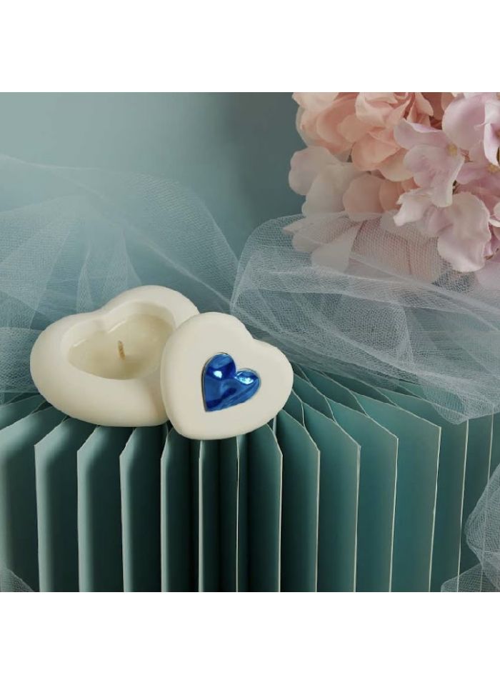 Scatolina in gesso cuore con candela con applicazione azzurra
