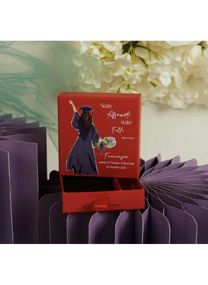 Scatola per confettata rossa per laurea femmina