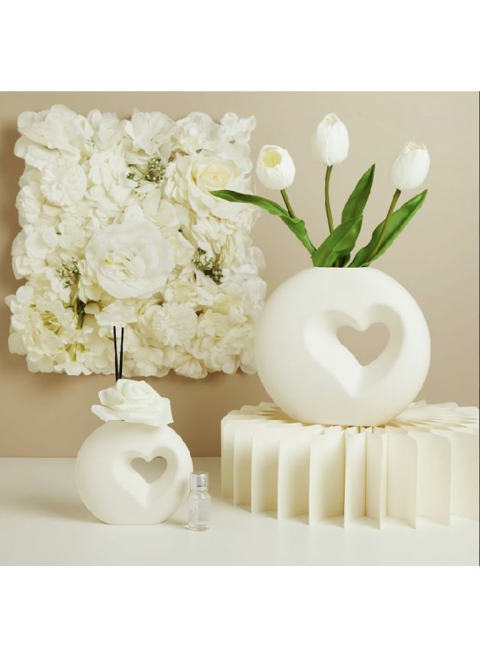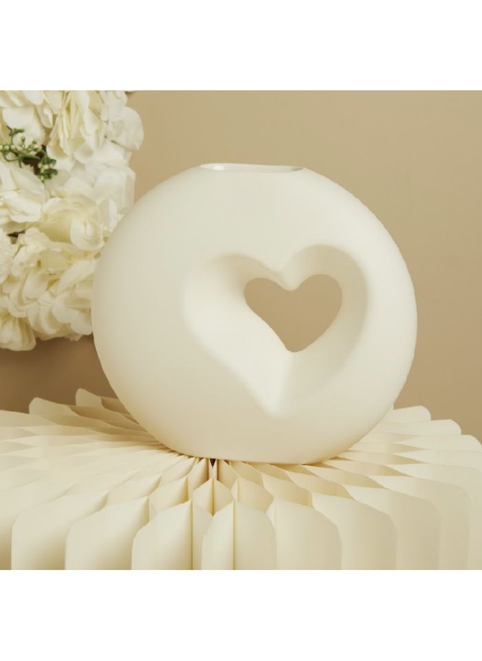 Vasetto tondo in porcellana bianca con foro a forma di cuore