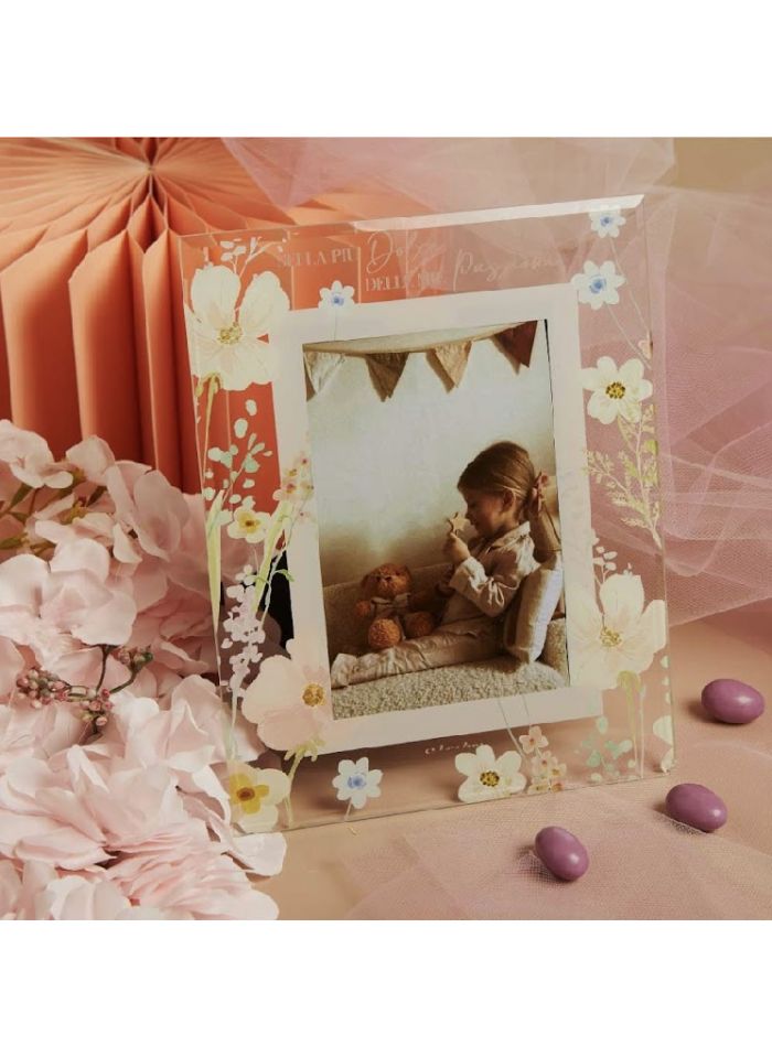 Portafoto in vetro con decoro floreale rosa