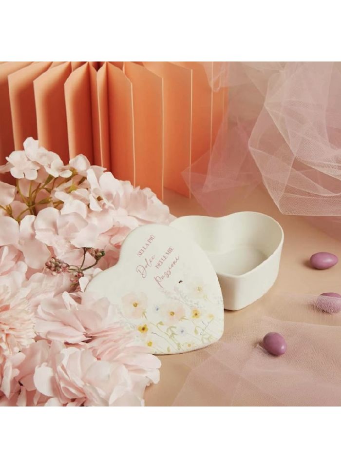 Scatola in ceramica a forma di cuore con decoro floreale rosa