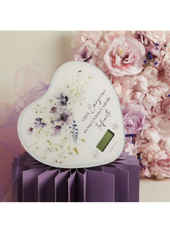 Bilancia a forma di cuore con decoro floreale lilla