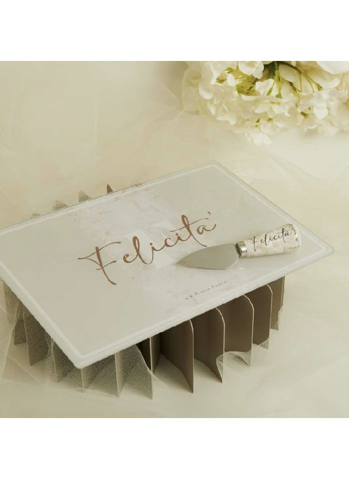 Tagliere in vetro con coltellino con decoro FELICITA'