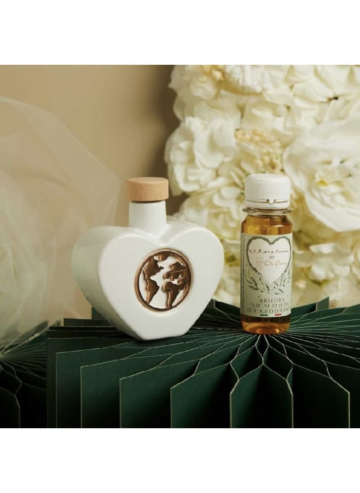 Oliera a cuore con mondo in oro rosa con olio