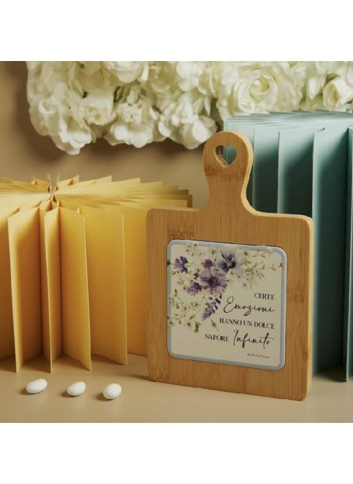Tagliere acacia con decorazione floreale lilla