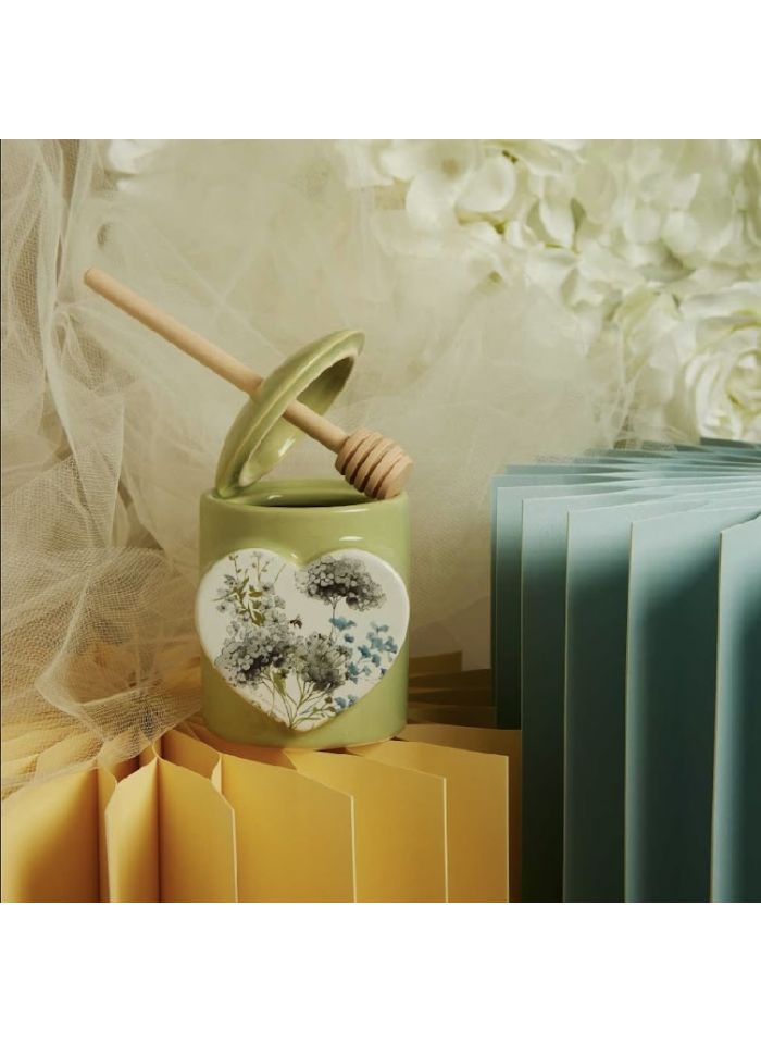 Portamiele con spargimiele verde con decoro florale (cl26101)
