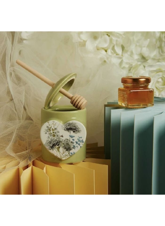 Portamiele con spargimiele verde con decoro florale con miele (cl26101m)