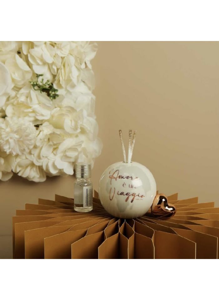 Diffusore globo piccolo con cuoricino oro rosa, completo di kit bacchette e profumino