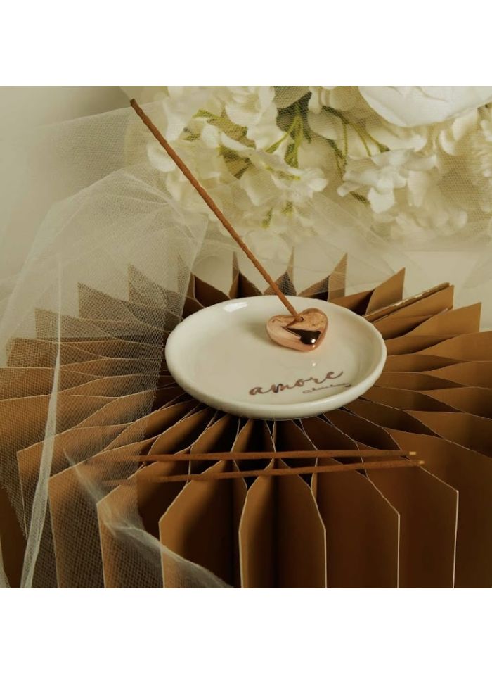 Piattino porta incenso con scritta AMORE, completa di 3 bastonini di incenso
