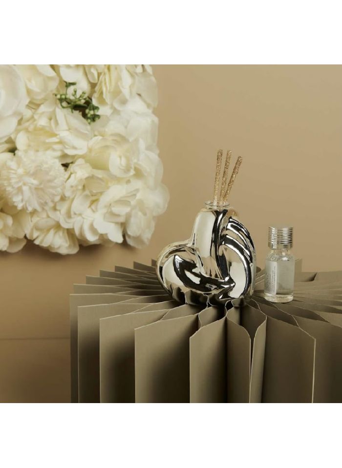 Diffusore cuore intrecciato piccolo in porcellana argento, completo di kit bacchette e profumino