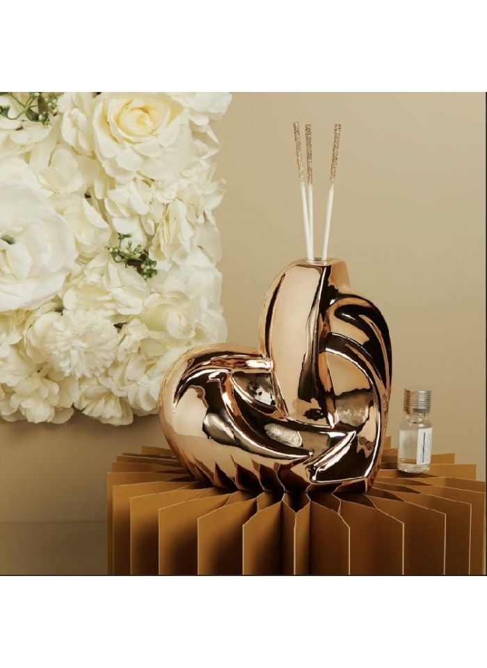 Diffusore cuore intrecciato grande in porcellana oro rosa, completo di kit bacchette e profumino