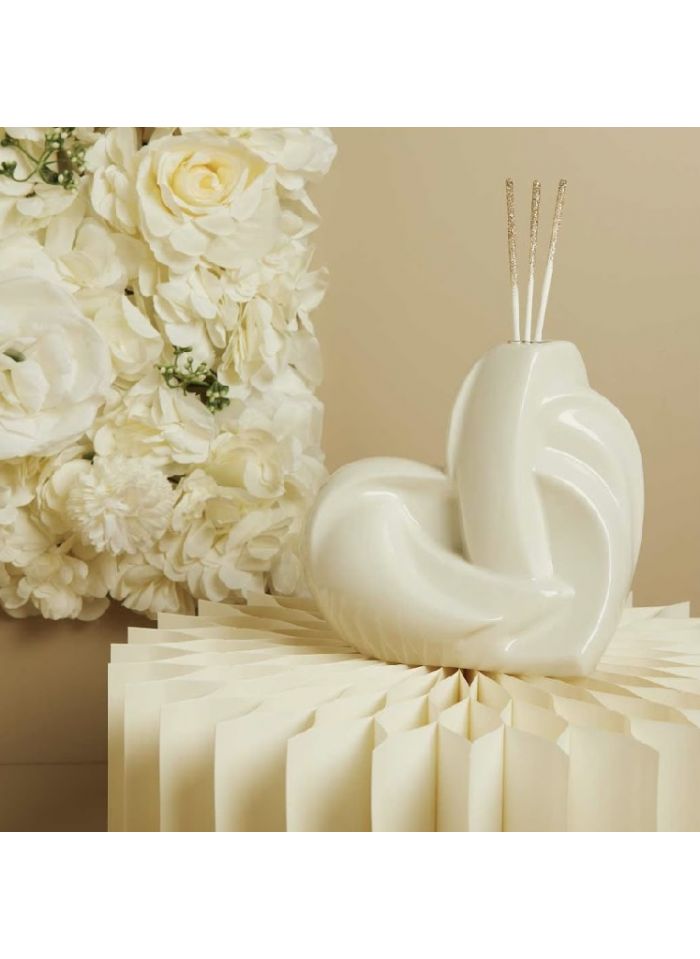 Diffusore cuore intrecciato grande in porcellana bianca, completo di kit bacchette e profumino
