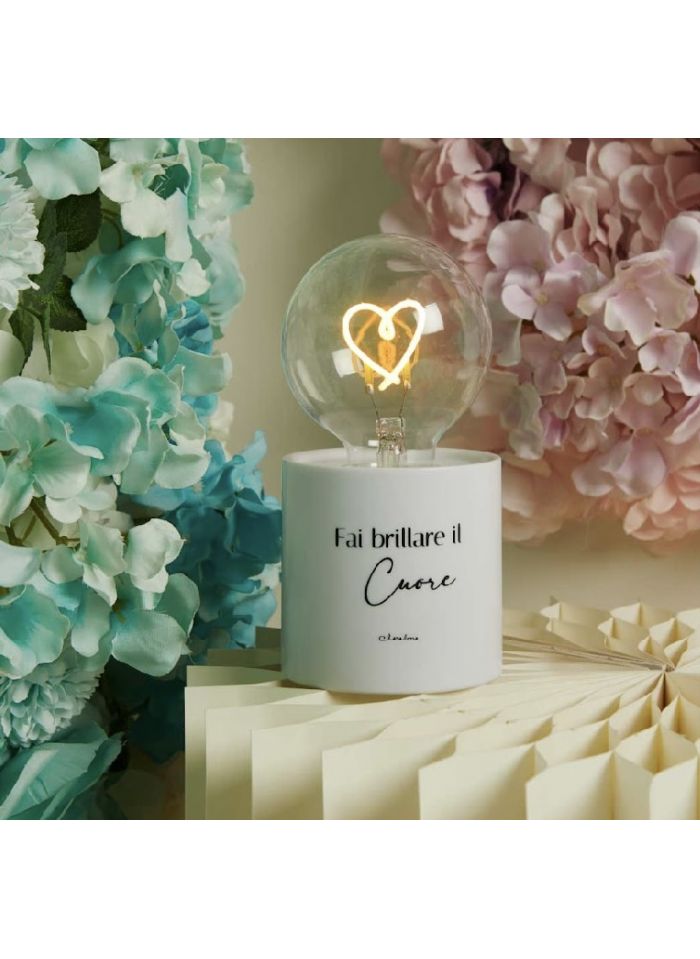 Lampada led bianca con frase e luce cuoricino