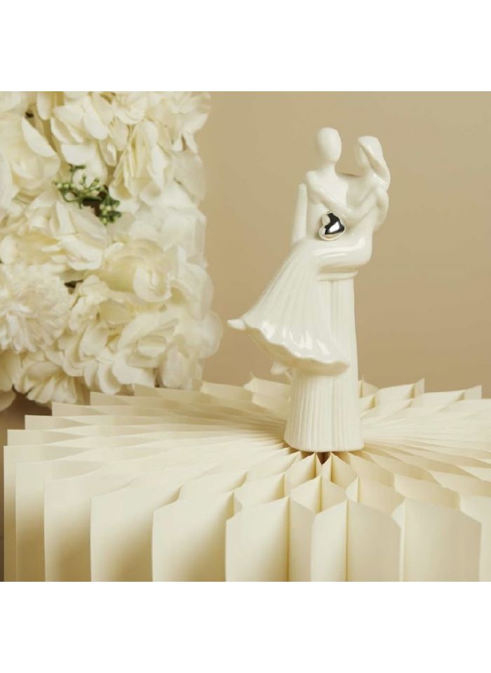 Coppia in porcellana bianca con cuore argento (cl26202)
