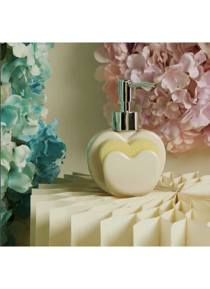 Dispendere di sapone con spugnetta a forma di cuore bianco