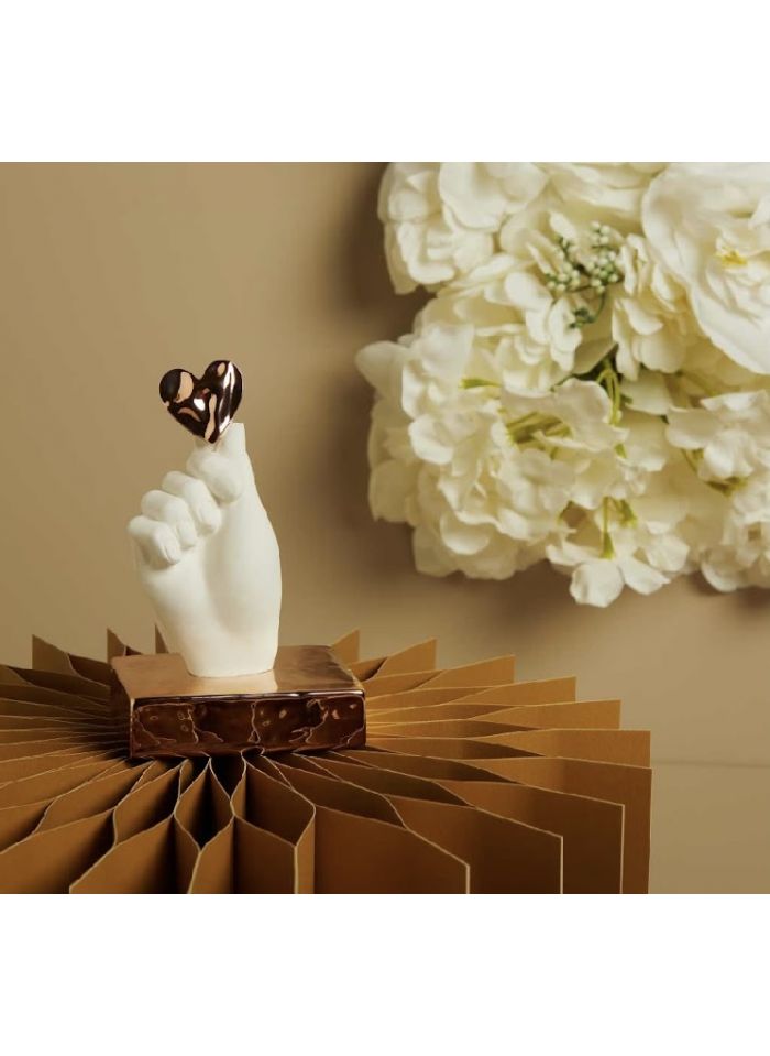 Mano in gesso su base con applicazione cuore in oro rosa