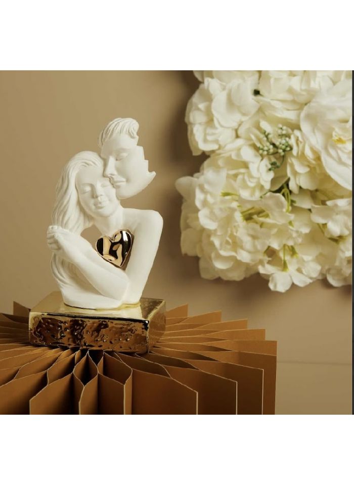 Coppia in gesso su base con applicazione cuore oro (cl26266)