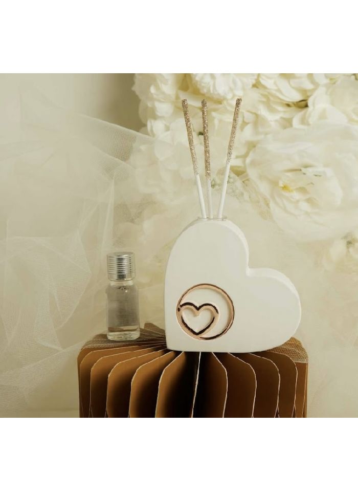 Diffusore cuore in gesso con applicazione in oro rosa con kit bacchette e profumino