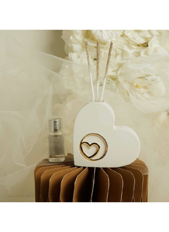Diffusore cuore in gesso con applicazione in oro con kit bacchette e profumino