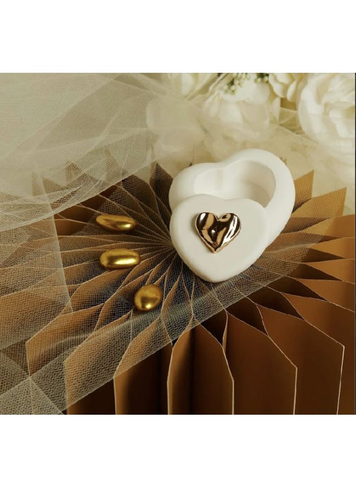 Scatolina cuore in gesso con applicazione oro (cl26293)