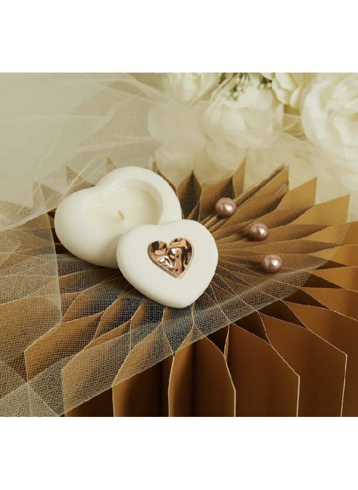 Scatolina in gesso cuore con candela con applicazione in oro rosa