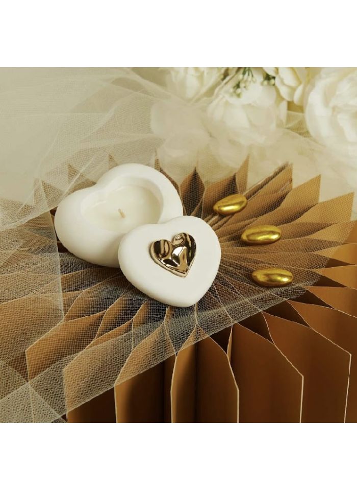 Scatolina cuore in gesso con candela con applicazione oro (cl26293cand)