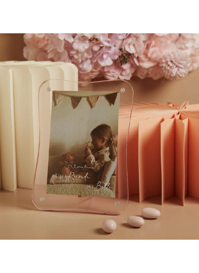 Portafoto ondulato rosa in plexyglass senza cuore (cl26311)