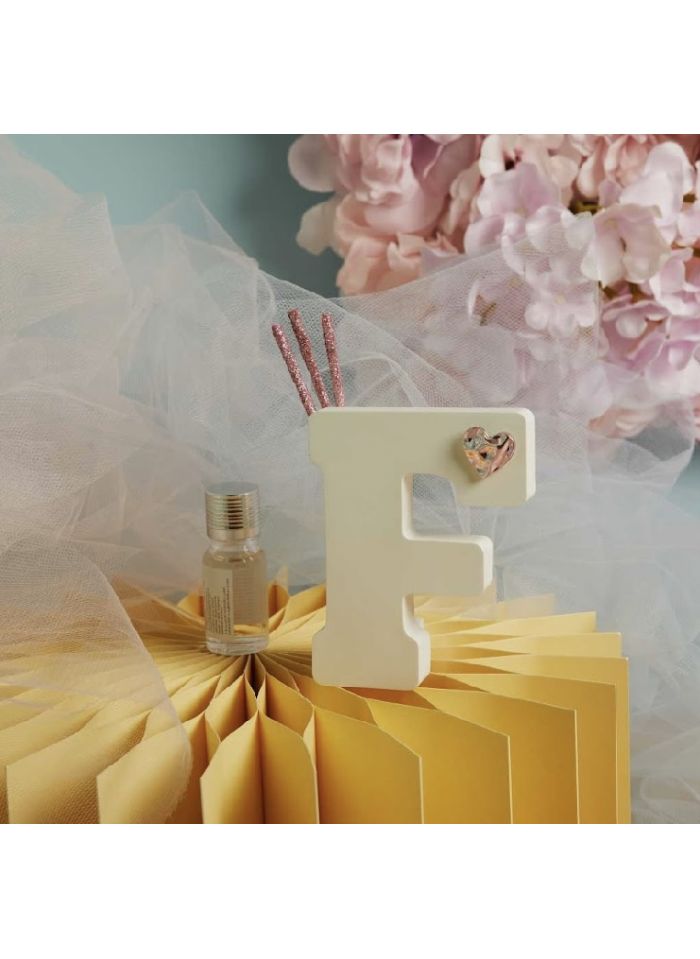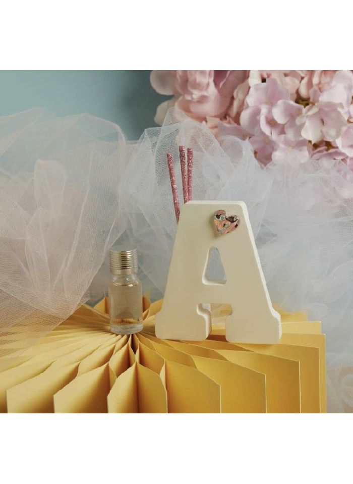 Diffusore lettera dell'alfabeto con applicazione cuore rosa completo di kit bacchette e profumino