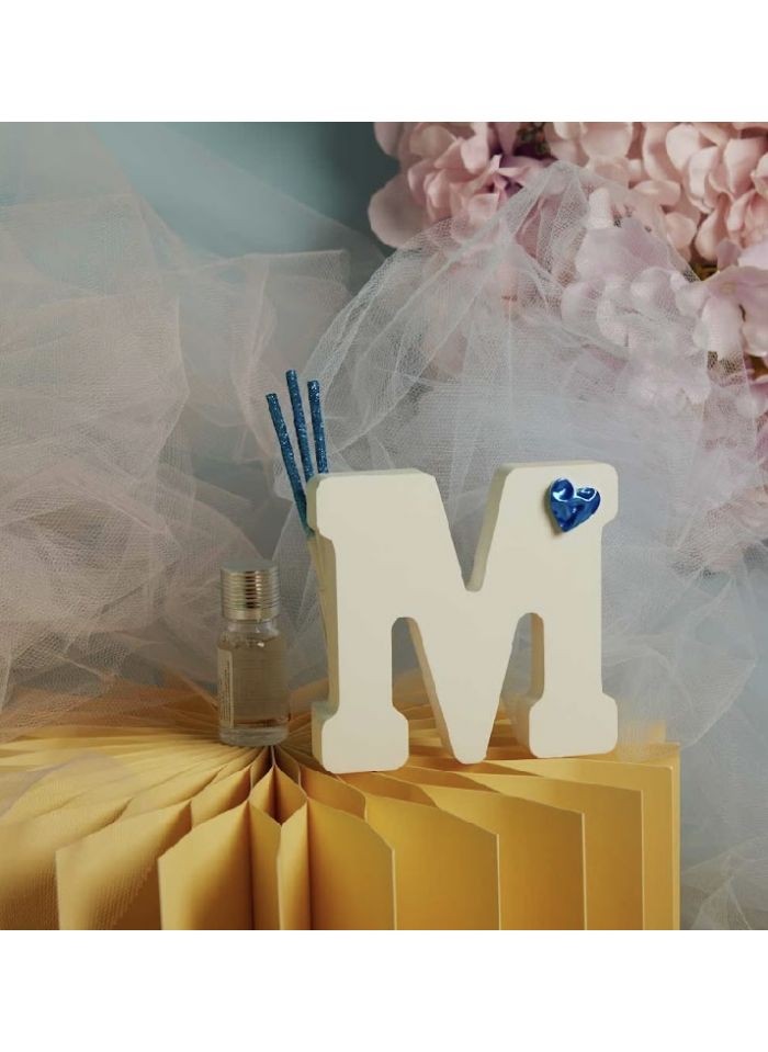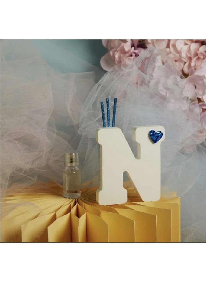 Diffusore lettera dell'alfabeto con applicazione cuore azzurro completo di kit bacchette e profumino