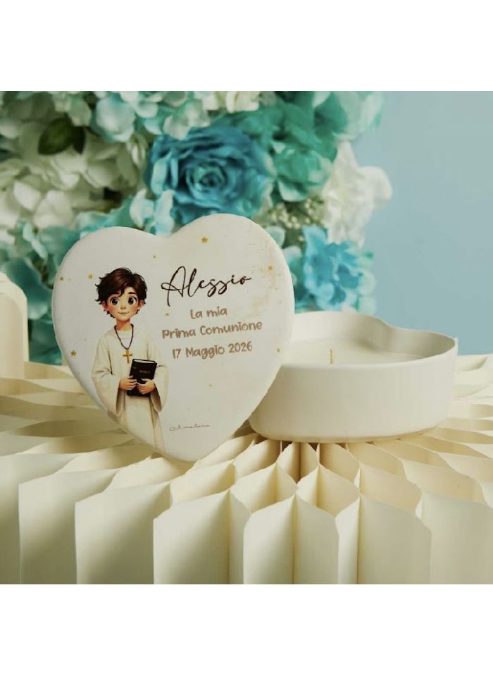 Scatolina cuore con ragazzo comunione con candela