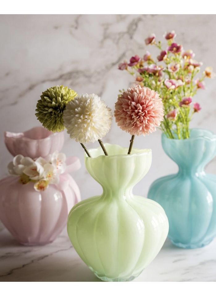 Vaso in vetro rosa con shopper